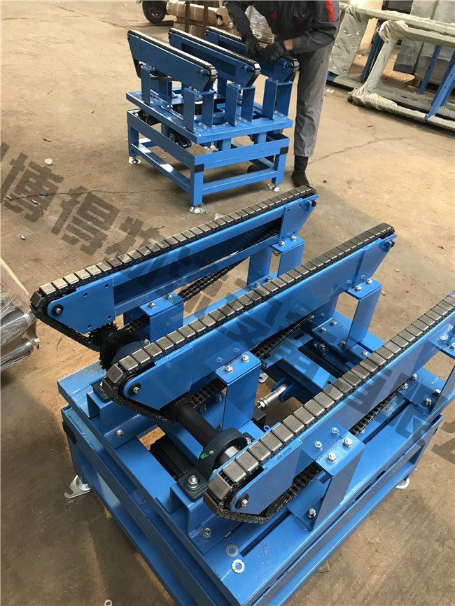 頂升移載機按照移載方式可以分為:凸輪頂升和氣缸頂升兩種,主要優(yōu)點為直角轉彎:在空間有限的條件下實現(xiàn)直角轉彎,具有節(jié)省空間的優(yōu)勢,缺點是:成本過高,輸送速度慢的缺點。而且對輸送機高度有一定要求。工件經(jīng)過頂升移載機后,原有的運行方向發(fā)生了改變。