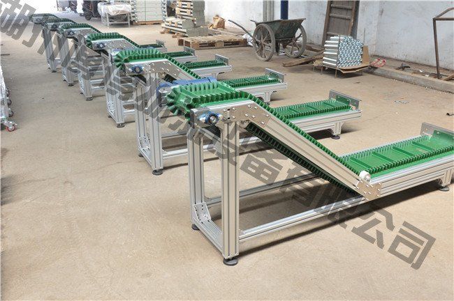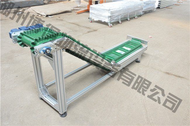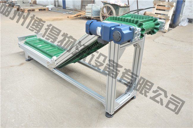 (1)爬坡輸送機(jī)為一般用途的散狀物料連續(xù)輸送設(shè)備,但采用的是具有波狀擋邊和橫隔板的輸送帶。因此,特別適用于大傾角及垂直90°輸送。